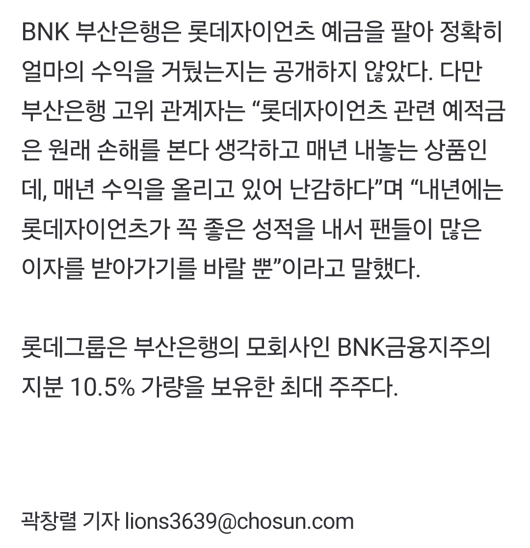 BNK 부산은행, 8년간 롯데자이언츠 예금 팔아 이자 160억원 아꼈다