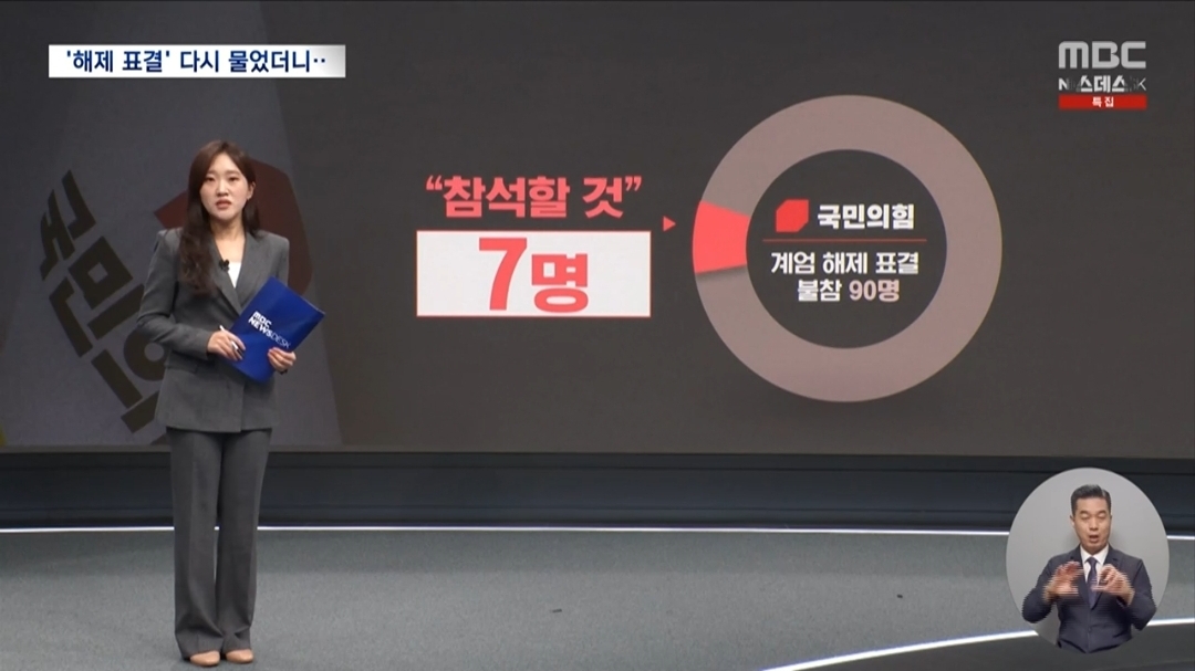 당시에 계엄 해제 결의안에 불참했던 국민의힘 90명 의원 가운데 단 7명만이 할 것이라고 대답했다고 합니다.