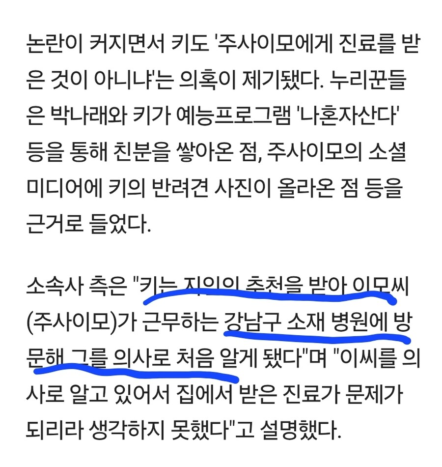 Subject   샤이니 키, '주사이모'에게 재택 진료 시인…"방송 하차"
