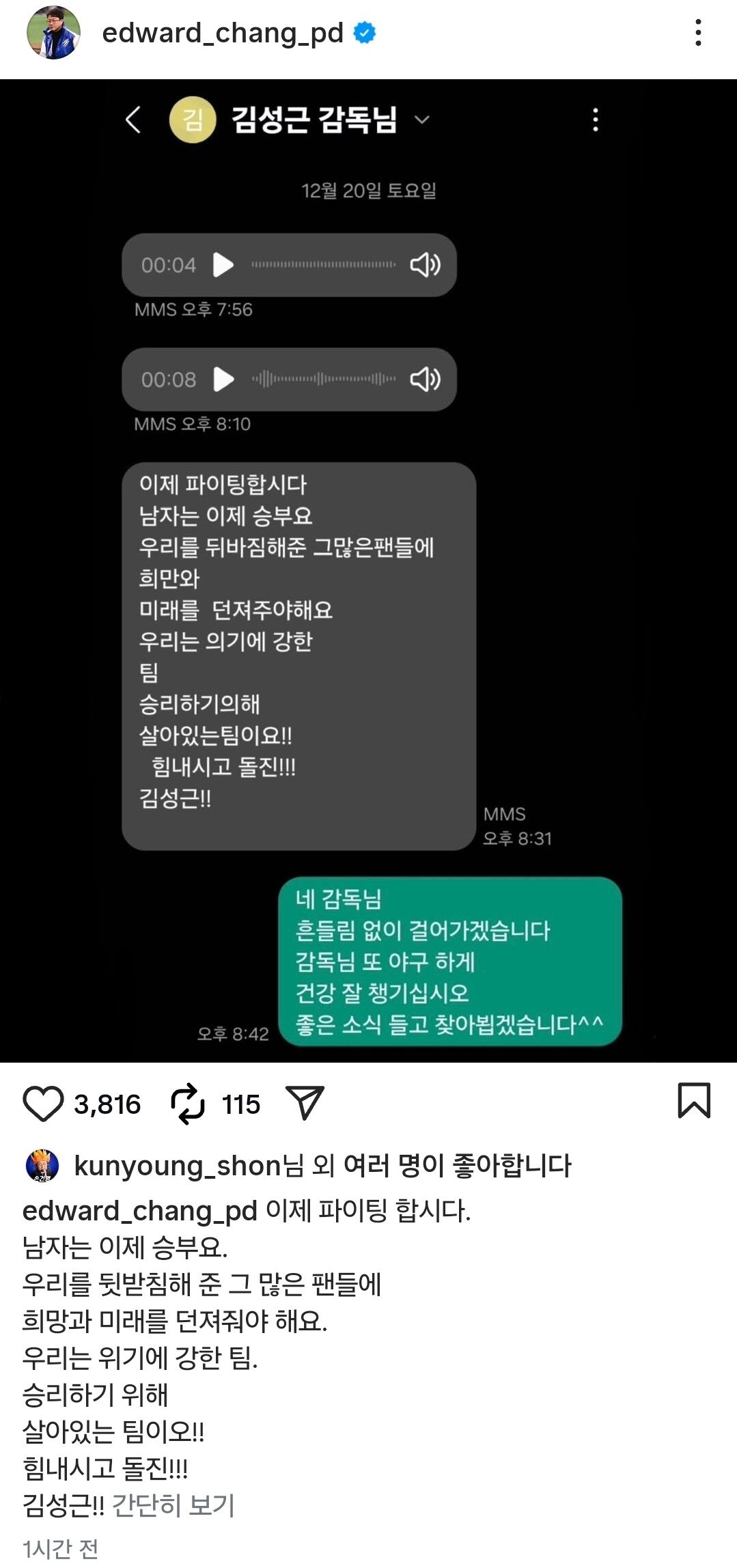 4172 방송/연예'불꽃야구' 문 닫게 생겼는데…장시원 PD, 사적 대화 공개했다 danielbard 25/12/21 214 0