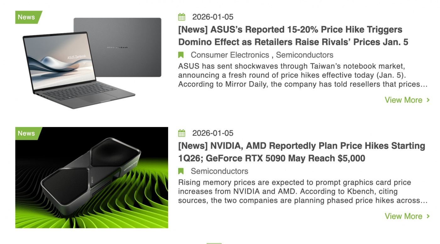 대만의 경우 ASUS 등이 오늘 큰 폭의 가격 인상을 단행했고, 작년 말부터 오르기 전에 사려는 수요가 폭증해서, 품절 상태인 노트북도 많다고 합니다. 인텔 팬서 레이크 탑재 신제품들은 가격이 얼마에 책정될지도 모르겠다고. 게이밍 랩탑 등 고가 모델일수록 인상 폭이 크다고 합니다.