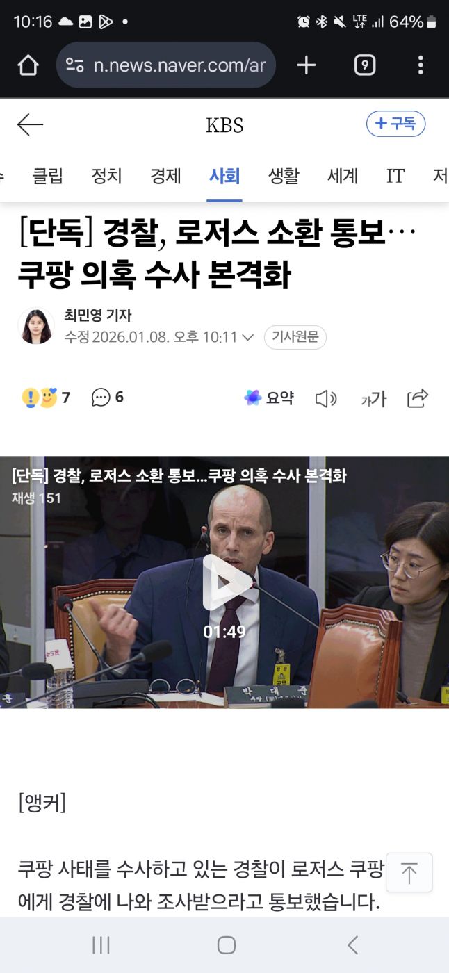 4316 사회경찰, 로저스 소환 통보…쿠팡 의혹 수사 본격화 활활태워라 26/01/08 375 0