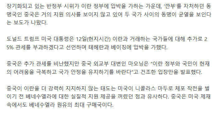 국제고립된 이란의 SOS에도…석유 90% 사가던 ‘깐부’ 중국 묵묵부답 2 + |