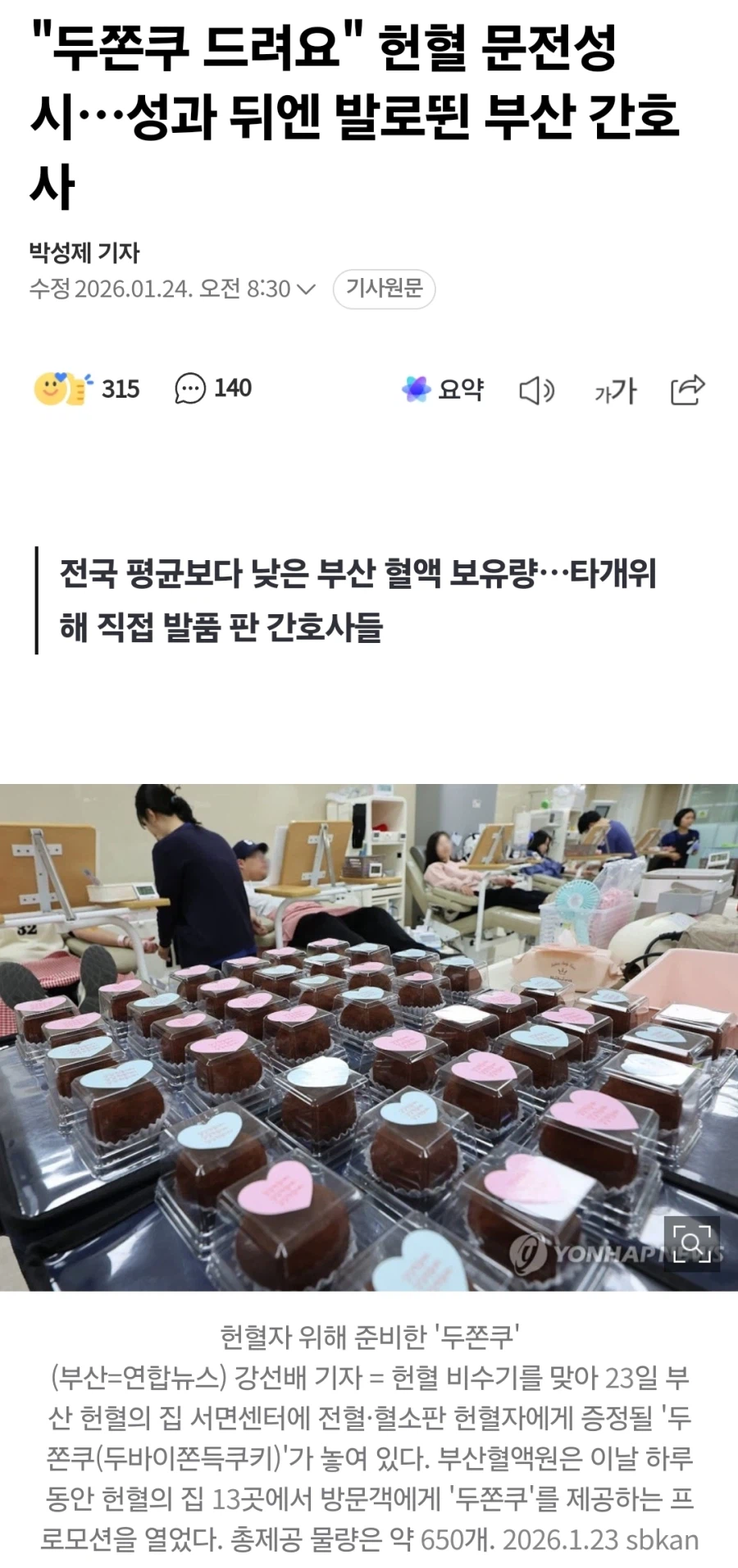 두쫀쿠 드려요" 헌혈 문전성시…성과 뒤엔 발로뛴 부산 간호사