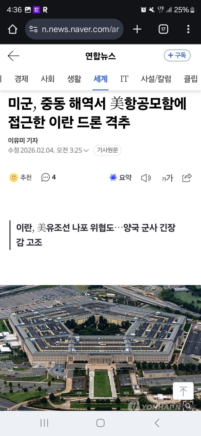 | Subject | 미군, 중동 해역서 美항공모함에 접근한 이란 드론 격추 |