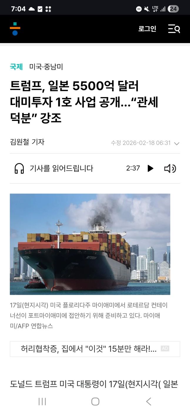 https://www.hani.co.kr/arti/international/america/1245300.html#ace04ou 댓글0 공유 저장 기사 읽어주기 글자크기조정 광고 본문 국제미국·중남미 트럼프, 일본 5500억 달러 대미투자 1호 사업 공개…“관세 덕분” 강조 김원철기자 수정 2026-02-18 06:31 펼침 기사를 읽어드립니다 2:37 기사 읽어주기 재생 볼륨 조절 바 열기 17일(현지시각) 미국 플로리다주 마이애미에서 로테르담 컨테이너선이 포트마이애미에 접안하기 위해 준비하고 있다. 마이애미/AFP 연합뉴스 17일(현지시각) 미국 플로리다주 마이애미에서 로테르담 컨테이너선이 포트마이애미에 접안하기 위해 준비하고 있다. 마이애미/AFP 연합뉴스 광고 도널드 트럼프 미국 대통령이 17일(현지시각( 일본의 5500억달러 대미 투자 대상 첫 사업들을 공개했다. 한국과의 유사한 합의를 맺은 트럼프 대통령은 한국의 이행 속도에 대해서도 불만을 표하며 관세 인상 가능성을 시사한 바 있다. 트럼프 대통령은 이날 소셜미디어 트루스소셜에 글을 올려 “일본과의 역사적 무역 합의에 따라 5500억달러 투자 약속의 첫 번째 사업이 공식적으로 출범했다”고 밝혔다. 트럼프 대통령은 텍사스주의 액화천연가스(LNG) 시설, 오하이오주의 대형 가스 발전소, 조지아주의 핵심 광물 개발 프로젝트 등 3개 사업을 언급하며 “미국 산업 기반을 되살리고 수십만 개의 훌륭한 일자리를 창출할 것”이라고 밝혔다. 트럼프 대통령은 오하이오주에 들어설 가스 발전소에 대해 “역사상 최대 규모가 될 것”이라고 밝혔으며, 텍사스주(멕시코만)의 액화천연가스(LNG) 시설에 대해선 “수출을 주도하고 미국의 에너지 패권을 더욱 공고히 할 것”이라고 강조했다. 조지아주의 핵심 광물 시설을 통해서는 “외국 자원에 대한 의존을 끝내겠다”고 선언했다. 다만 구체적인 자금 조달 방식이나 참여 기업은 아직 공개되지 않았다 해당 기금은 미국의 핵심 산업에 대한 일본의 대규모 투자를 유도하기 위해 마련된 장치로, 지난해 체결된 관세 합의의 핵심 요소다. 당시 미국은 일본산 수입품에 대한 관세를 15%로 인하하고, 일본 자동차 분야의 관세도 낮추기로 했다. 양국은 다음 달 19일 워싱턴에서 열릴 정상회담에서 무역·경제 합의의 구체적 이행 방안을 주요 의제로 다룰 것으로 보인다. 앞서 하워드 러트닉 미국 상무장관과 아카자와 료세이 일본 경제산업상은 워싱턴에서 만나 1차 투자 발표의 세부 사항을 조율했다. 아카자와 장관은 해당 기금이 고위험·고수익 사업이 아니라 안정적 수익을 기대할 수 있는 사업에 초점을 맞출 것이라고 밝혔다. 관세라는게 결국 미국인들이 더 큰 피해를 입는걸로 증명되고 있는데 관세를 근거로 투자가 쉽게 이뤄져야 트럼프도 관세를 더 앞장세우고 다른 국가에 돈을 뜯어낼텐데 트럼프 입지가 점차 불리해지니 이런 협의나 협상이 쉽게 진척이 될런지요. 아무리 일본이라도 크크크... 0