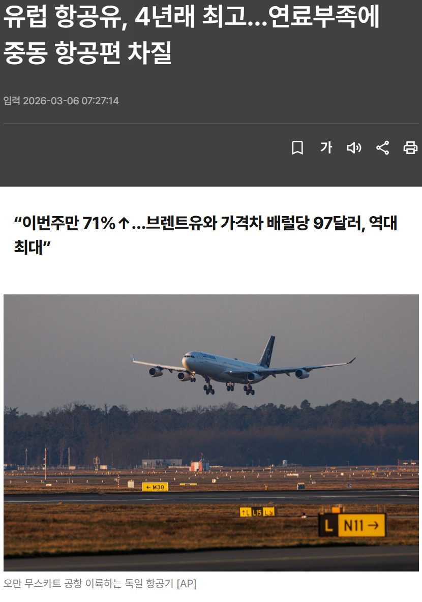 4794 경제유럽 항공유, 4년래 최고…연료부족에 중동 항공편 차질 1 + 활활태워라 26/03/06 387 0