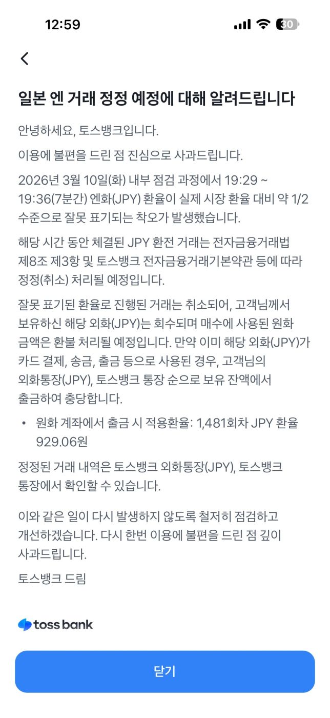 | Subject | 금감원, '엔화 반값 오류' 토스뱅크 현장점검…100억원대 손실 |
