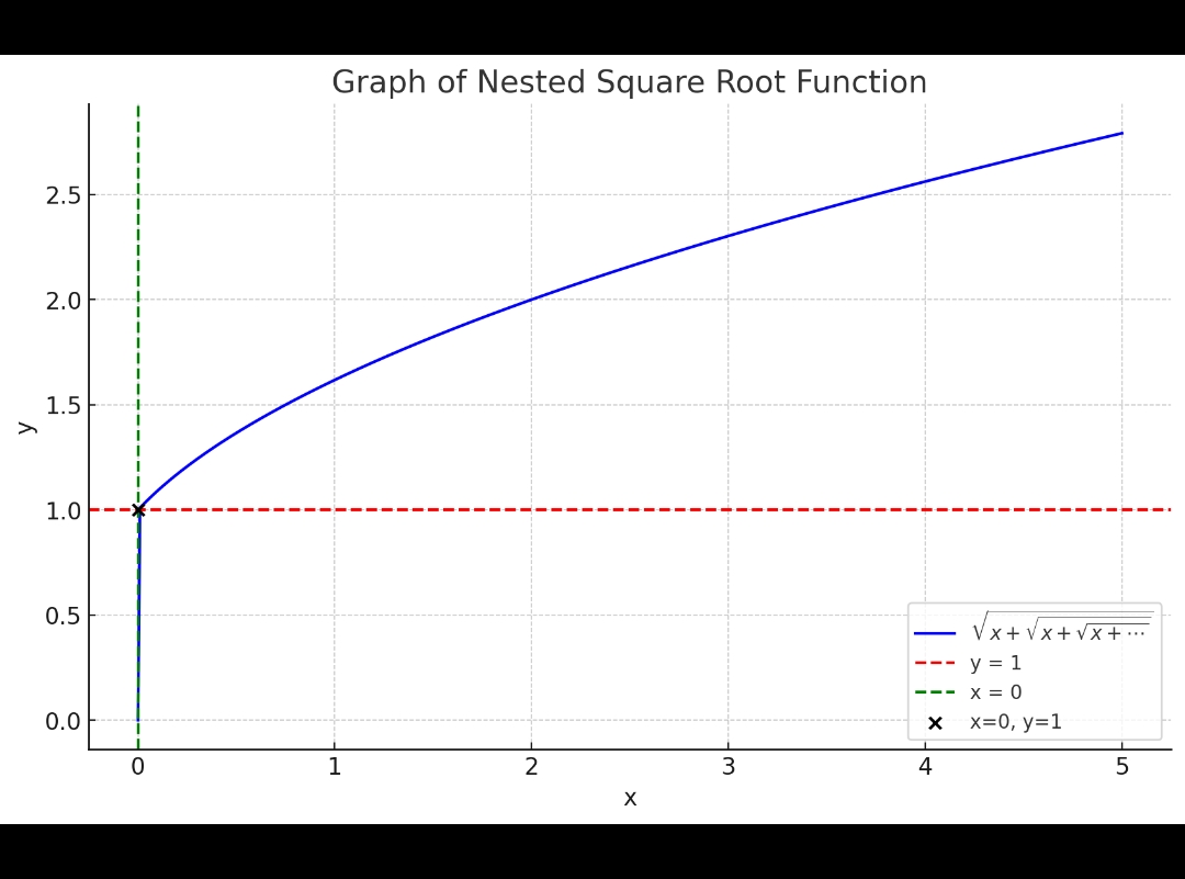 제곱근을 편의상 sqrt() 라고 쓰겠습니다. 예를 들어 이렇게 제곱근 속에 제곱근이 무한히 있을 경우 한번 제곱해준 다음에 다음과 같이 풀어주면 된다는 것을 알겠습니다. (1) 시작: sqrt(x + sqrt(x + sqrt(x + ...))) = 3 (2) 양쪽을 제곱해주면: x + sqrt(x + sqrt(x + sqrt(x + ...))) = 9 (3) 그런데 sqrt(x + sqrt(x + sqrt(x + ...))) = 3 이니까 x + 3 = 9 (4) 따라서 x = 6 이건 알겠는데요, 이렇게 풀 수 있는 제한조건이 있을 것 같은데 그게 뭔지를 모르겠습니다. 예를 들어서 위의 맨 처음 식에서 오른쪽의 3만 1로 바꿔보았는데 그랬더니 이상한 결과가 나옵니다. (1) 시작: sqrt(x + sqrt(x + sqrt(x + ...))) = 1 (2) 양쪽을 제곱해주면: x + sqrt(x + sqrt(x + sqrt(x + ...))) = 1 (3) 그런데 sqrt(x + sqrt(x + sqrt(x + ...))) = 1 이니까 x + 1 = 1 (4) 따라서 x = 0 ??? x = 0 이면 sqrt(x + sqrt(x + sqrt(x + ...))) 는 당연히 0일텐데??? 그래서... 질문을 요약하면 다음과 같습니다. (1) 뭔가 이런 방법으로 답을 구할 수 있는 경우가 한정되어있을 것 같은데, 그 조건이 어떻게 될까요? 질문을 쓰다 보니 지금 순간 든 생각이, 아마 x > sqrt(x) 라는 조건이 충족될 때에만 저런 식으로 답을 구할 수 있을 것 같은데 맞는지 모르겠네요. (2) sqrt(x + sqrt(x + sqrt(x + ...))) = 3 에서 x = 6이라고 구한 답은 맞는 답이기는 한가요? =_= 답변에 미리 감사드립니다. 0