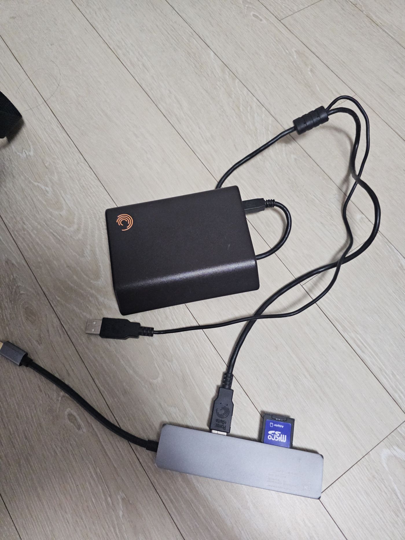 이제 노트북을 못(안)들고 다니니, 그날의 영상을 외장하드로 옮기기 위한 중간 허브 기기가 필요합니다
