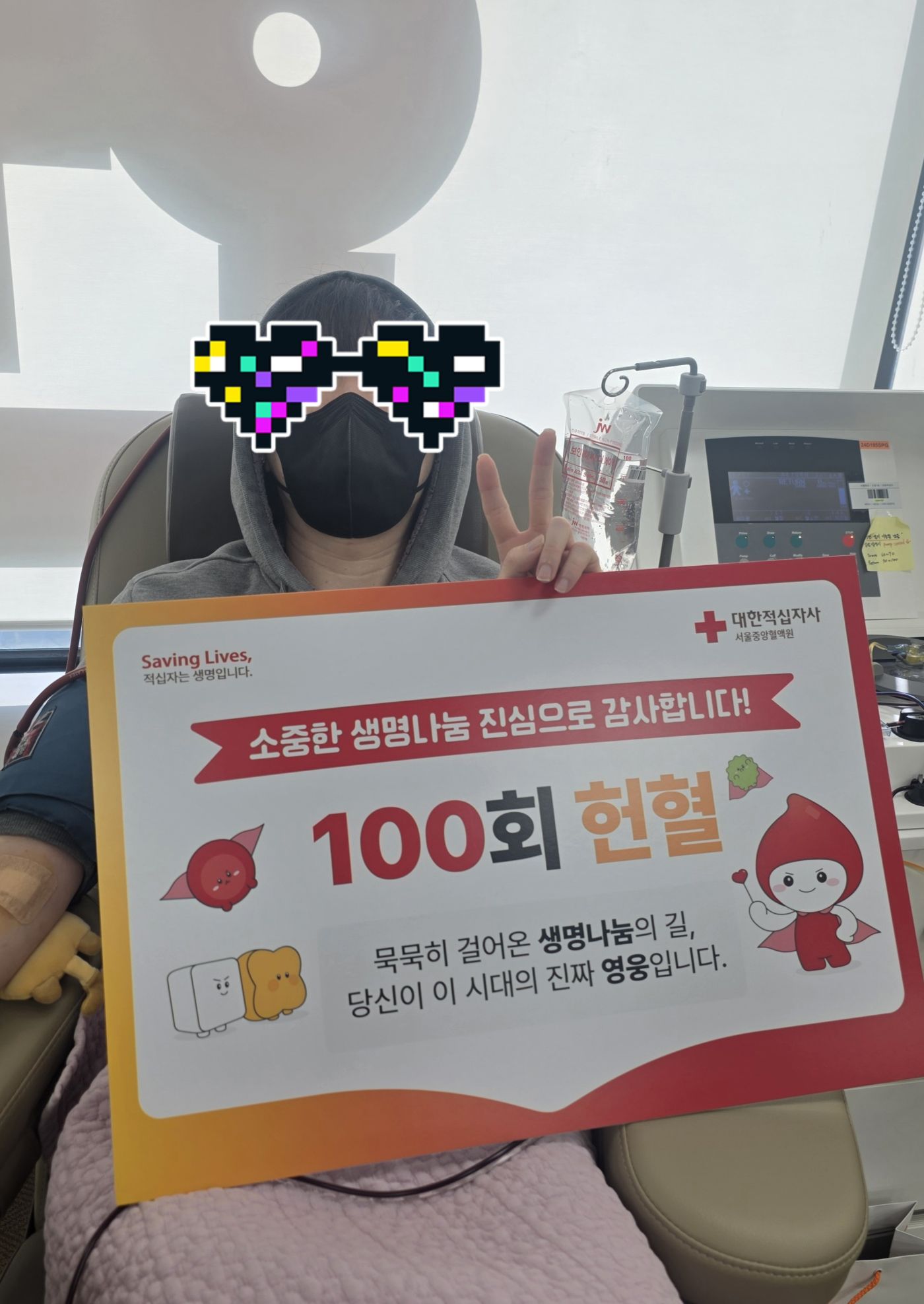 어쩌다보니 백회를 채웠읍니다. 대학생때 문상준대서 시작했던 헌혈 ㅋㅋㅋ 귀찮아서 안하고 있다가 30중반되서야 본격적으로 했읍니다. 지금도 봉사라기보다는 숫자 업적 채우는거에 가깝읍니다. 이제 탈모약을 먹을 수 있겠군요 후후 그래두 어디서 본건데 100회이후부터 또 사람수가 확 준다고해서 좀만 더하려합니다. 모발이 버텨주는한... 항상 다들 건강하십쇼. * Cascade님에 의해서 티타임 게시판으로부터 게시물 복사되었습니다 (2026-03-17 07:54) * 관리사유 : 추천게시판으로 복사합니다. 40