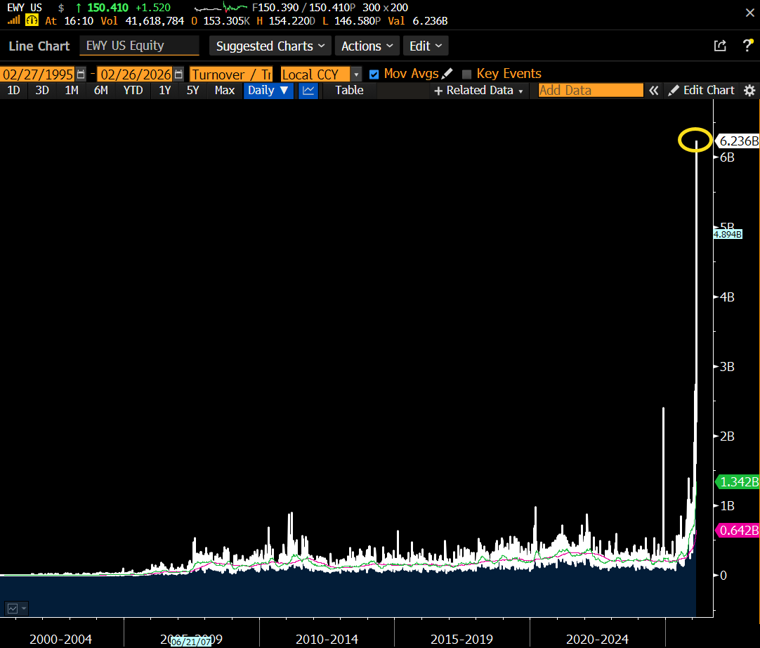 모건스탠리 "코스피 목표치 6,500으로 상향…강세장시 7,500" https://www.yna.co.kr/view/AKR20260227081100008 기울기가 무슨... 참고로 오늘은 EWY 리밸런싱이 있습니다. 3