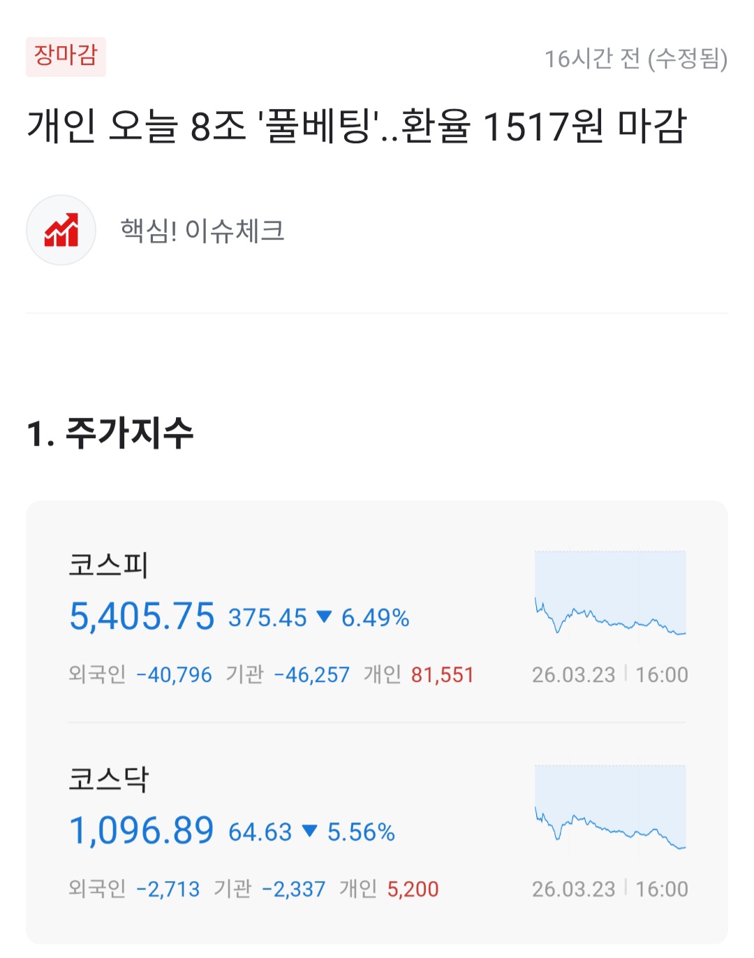 | Subject | 개미들은 요즘 폭락하는 날이면 역대 손꼽히는 수준으로 순매수 갈겨버린 |