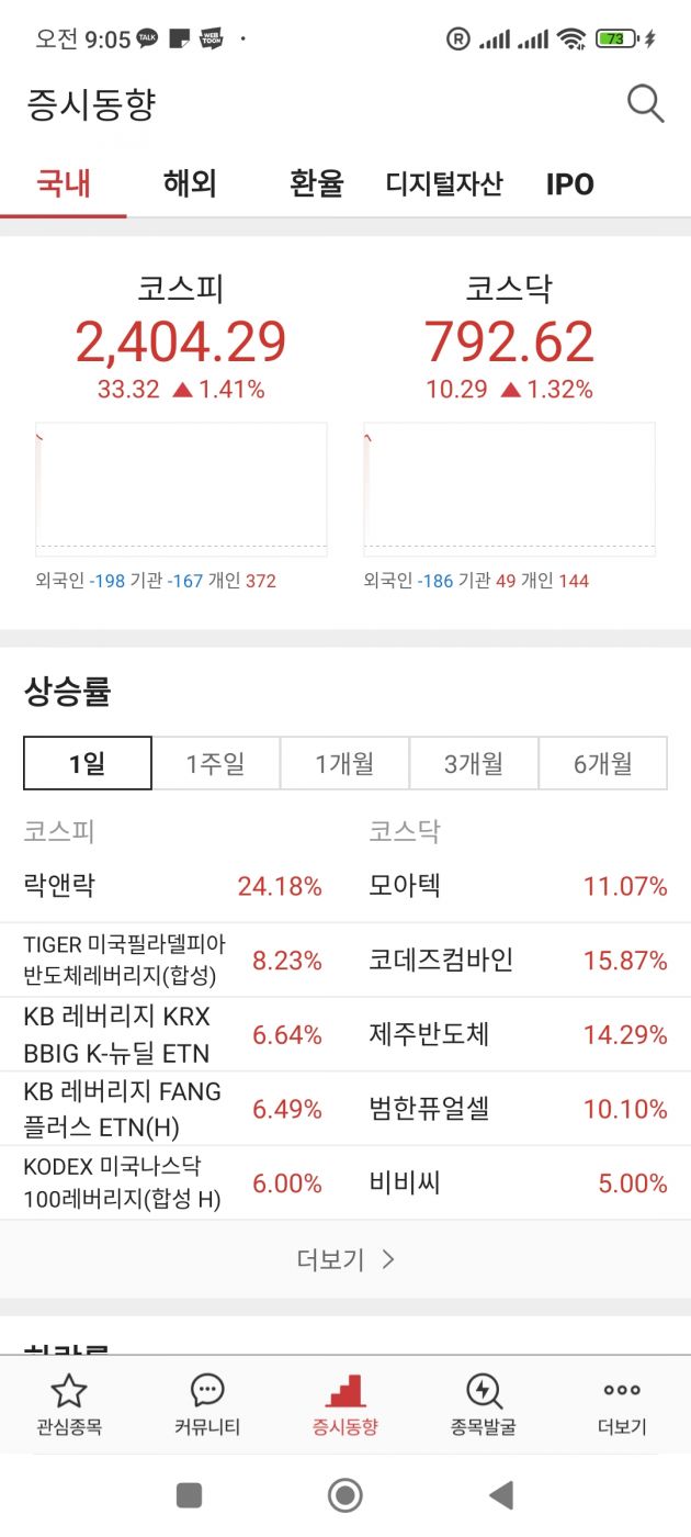 여러분 죄송합니다. 숏충이 징징대러 왔습니다. 제가 징징대고 이틀 지나면 꼭 떨어지니 그냥 경고차 왔읍니다. 나름 인간지표같아서 조용히 있을까하다가 도움이 될까 싶어 올려봅니다.현재 BITI 코스닥 나서덕 숏중이니 유념하십시오.. 난 왜 맨날 좀 잃다가 푼돈만 먹고 도망치는지 모르겠지만 그게 나니까!