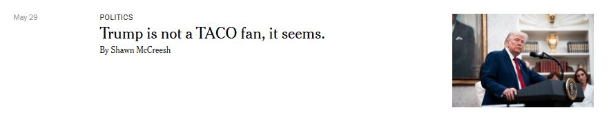 럼프형 성격을 알면서도 대놓고 'T.A.C.O. 매매법이 무슨 뜻인지 아세염?' 이라는 질문을 꽂는 기자는... 그런 기자가 존재할 수 있는 나라는... 신기합니다. 이거 번역하면 '님쫄 매매법' 같은 건데.