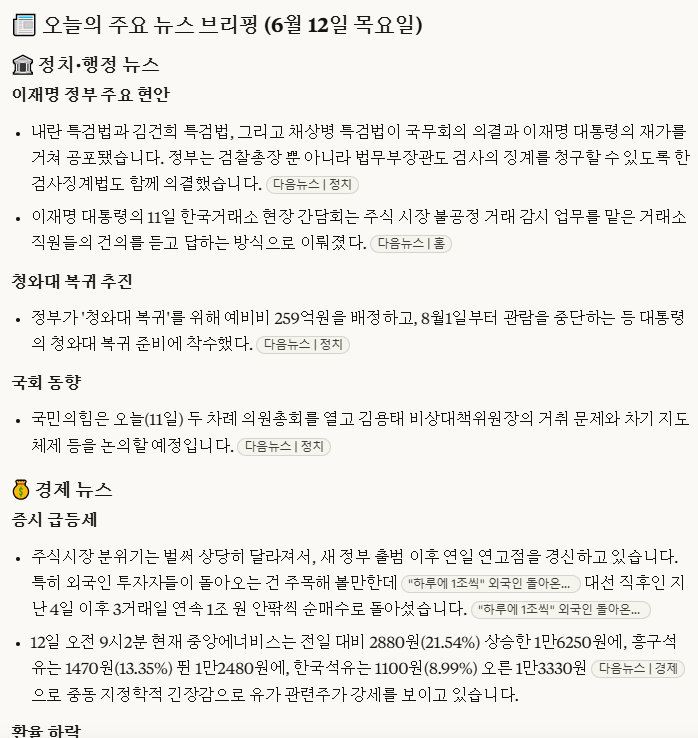 아침에 클씨에게 뉴스 브리핑해 달라고 하면 잘 뽑아줘서 편합니다.