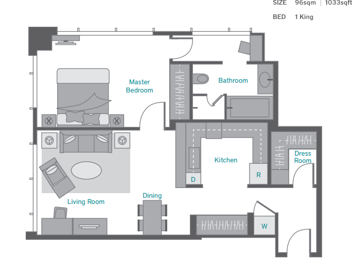 의류는 저도 옷이 좀 많은 편인데, 호텔보다는 옷장 수납 공간이 많은 편입니다. (위 플로어 플랜과는 조금 다르게 드레스 룸 대신 그 자리에 세면대와 양변기만 있는 화장실이 하나 더 있는 객실이었습니다.) 플로어 플랜에 안 나오는 TV아래 수납공간이나 서랍장 그리고, 일반 호텔용 보다 조금 큰 금고 같은 것도 있었습니다.