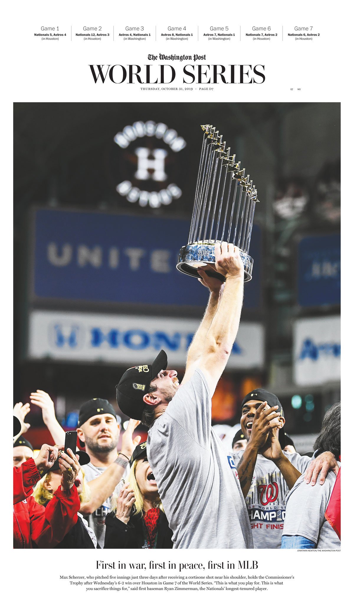 물론 제가 우승한건 아니고...나름 깊게 팬질하던 메이저리그 팀인 [워싱턴 내셔널스]가 희박한 확률을 뚫고 첫 우승에 성공했습니다.