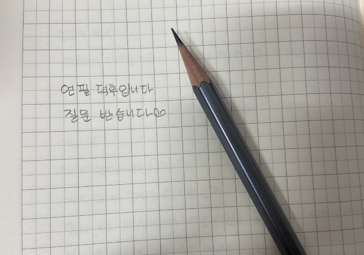 연필은 깎아쓰는 재미가 있고 심이 굵어서 잘 부러지지 않습니다 종이에 사각사각 긁히는 맛이 정말 좋고요 ㅎㅎ