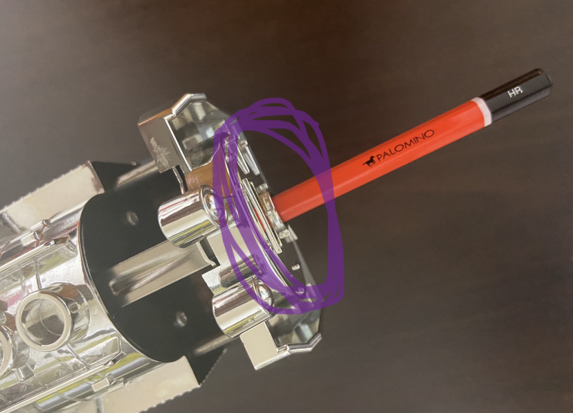 일반 연필깎이는 이렇게 연필 몸통을 조이고 깎게 되는데 이 과정에서 간혹 연필의 나무 몸통이 이로 깨문듯한 자국이 나기도 합니다 ㅠㅠㅠ 저의 전 수동연필깎이도 그랬어요 ㅠㅠㅠ