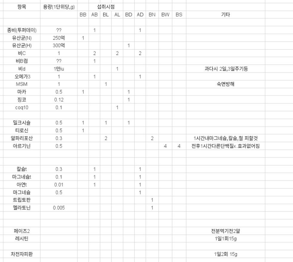 단백질보충제는 1~2스쿱 먹읍니다 (스쿱당 2천원정도) 주 2~3회 빡신근력운동할땐 크레아틴 BCAA 등등...좀 더 먹읍니다 (한 2천원어치)