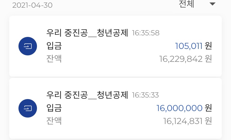 인풋 : 2년/300만원 아웃풋 : 2년/300 + 1300만원 = 1600만원 수익률 : 433% 아직 나라에서 인정하는 청년(?) 입니다? 이 사업은 머기업을 제외한 3천억 이하 중견기업 or 좋소기업 재직시 혜택을 볼 수 있읍니다. 대기업,3천억이상 중견기업,공무원,공기업,군인,군무원,교사,자영업 및 타직군보다 많은 노오오력이 필요한 고소득군 특수 '사'짜 직업군은 제외입니다. 2년짜리 사업인데 실제로는 2년에서 1~2개월 추가됩니다. 21년 가입자부터는 혜택을 조금 줄이고 (만기시 1200만원) 좀 더 많은 청년들이 혜택을 볼 수 있도록 한다고 했읍니다. (전년도 국회에서 내년예산 편성시 예산을 미리 정해두기에 다음년도 예산 소진시 가입불가, 즉 선착순!! 단, 추경예산이 통과되면 가입 가능) 기업 -> 채움공제 관리팀 -> 중기청 순으로 문서승인 및 자금집행까지 시일이 소요됨 사내 인사 or 회계팀에서 빠른 문서접수가 안될경우 질질 끌리는 단점이 있읍니다. 저는 회사공인인증서를 제 자리에서 쓸 수 있어 빨랐읍니다. (좋소의 장점이자 단점;;) 빠르게 한다고 했는데도 문서접수하고 입금까지 딱 3주 걸렸읍니다. 궁금한게 있으믄 물어봐주십시오 2