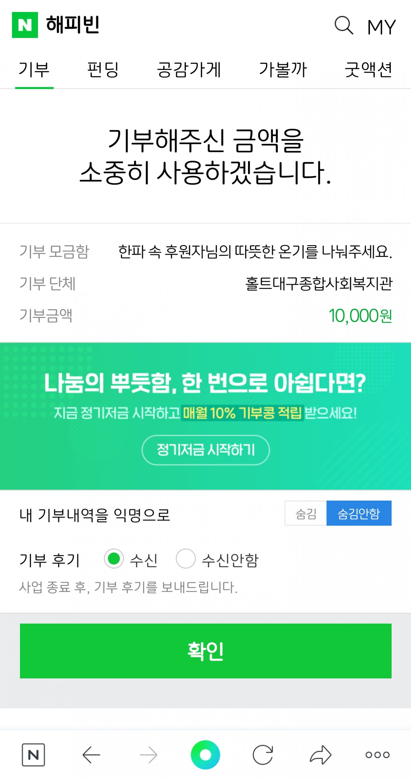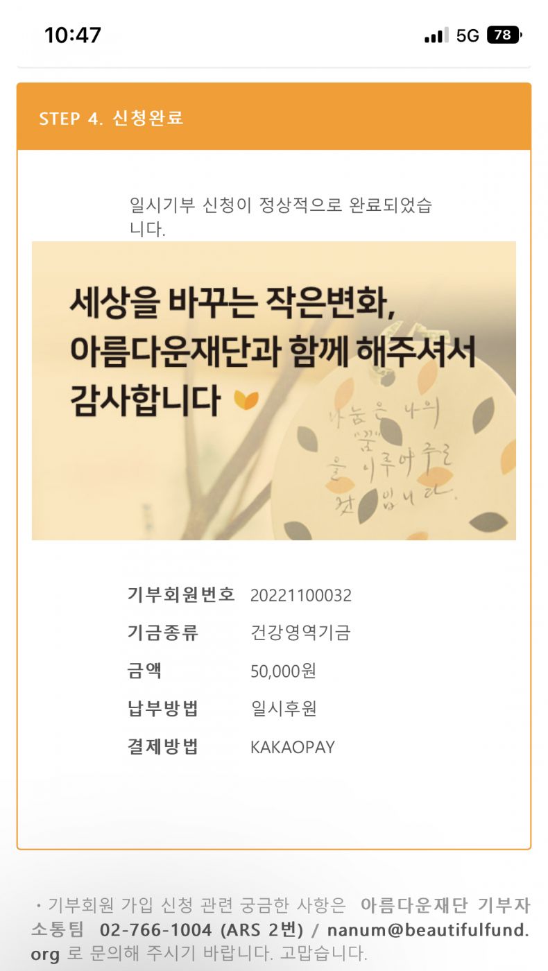 비록 성경에는 [너는 구제할 때에 오른손이 하는 것을 왼손이 모르게 하여(마6:3)]라고 씌여져 있습니다만, 저는 사람들이 이러한 기부 소식을 자주 접할수록 좋은 공명이 일어난다고 믿습니다. 요컨데, 기부에 관심없던 분들도 소식을 듣고 '나도 기부 한 번 해 볼까?' 하는 마음이 들도록 한다는 거지요. 소액이라고 부끄러워할 것도 아니고, 기부했다고 자랑하는 것도 아닙니다. 좋은 울림이 모이고 또 모이면 더 큰 하나의 울림이 될 수 있으니, 본인의 기부를 공유하시는데 거리낌이 없으셨으면 좋겠습니다.