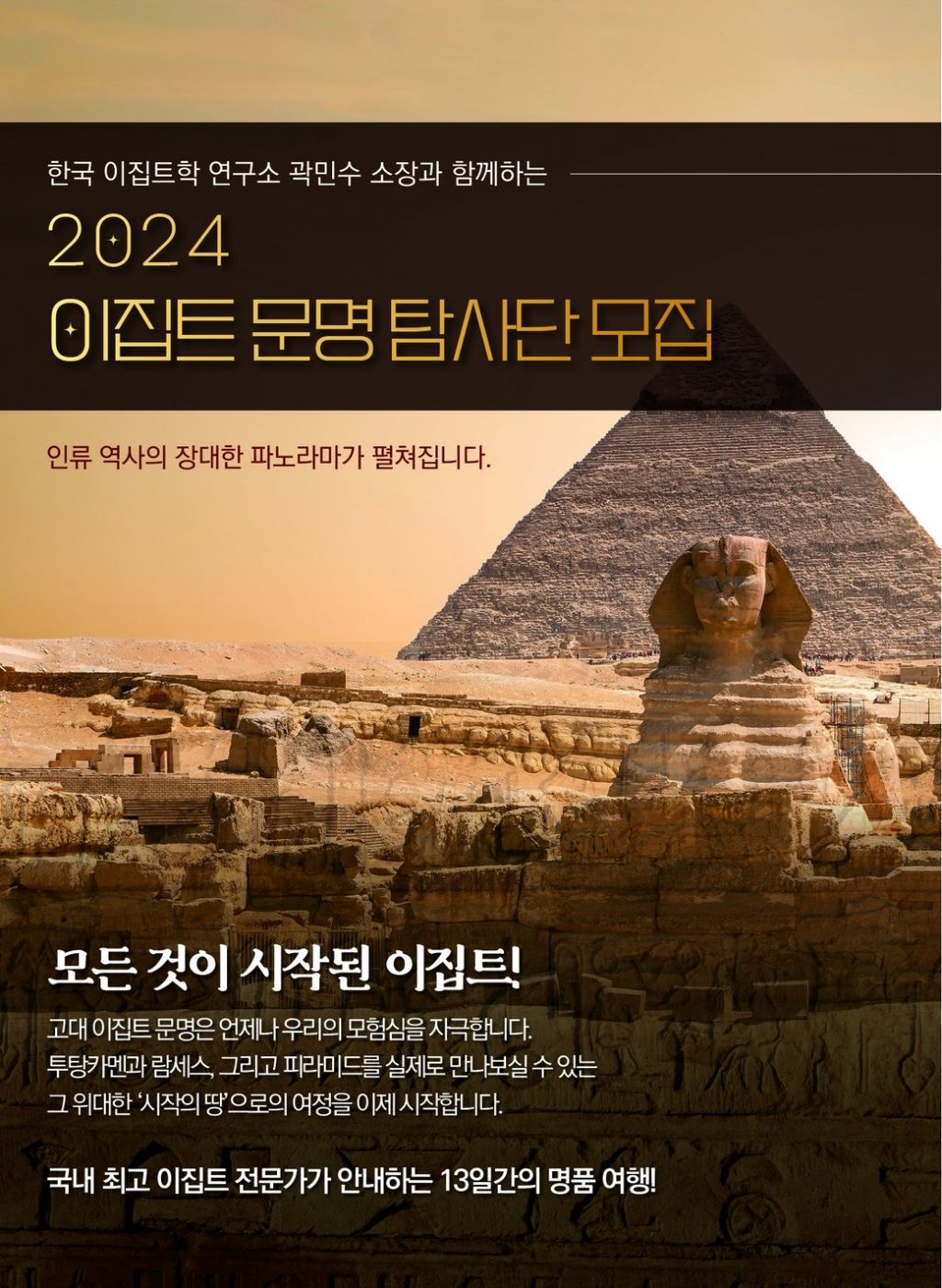 여행주제는 고대 이집트 유적 탐방인데, 휴식이나 자유시간, 쇼핑 등의 여유 없이 시간이 남는대로 단 하나의 신전, 단 하나의 무덤, 단 하나의 피라미드라도 더 가도록 꽉꽉 채워넣은 빡센 일정입니다. 여행일정은 곽민수 소장님이 직접 한땀한땀 계획하여 짜신 일정입니다.