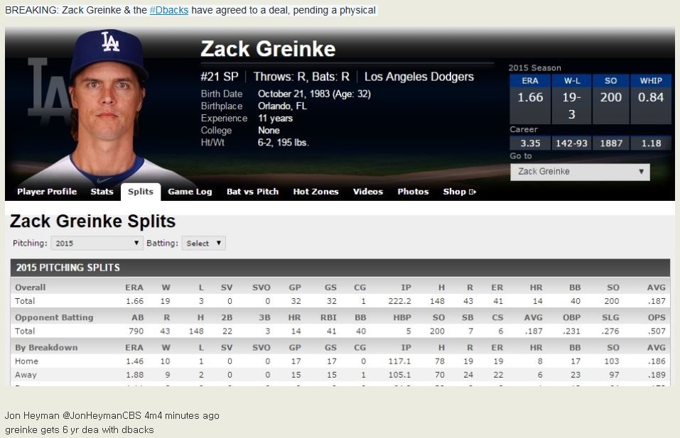 Subject   [비공식] 잭 그레인키, 애리조나 이적.