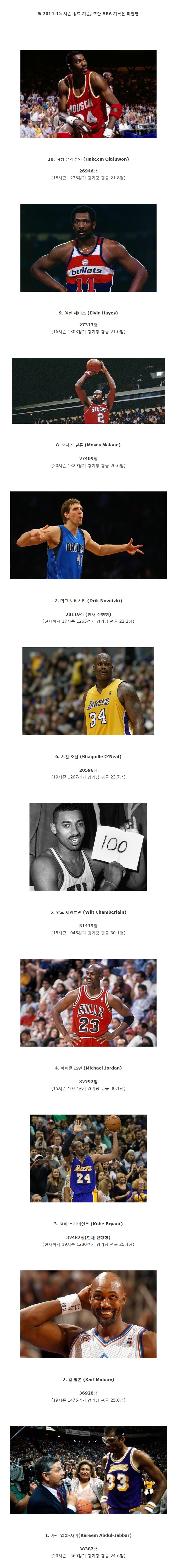 428 농구역대 NBA 정규시즌 통산 득점 Top 10 1 김치찌개 15/12/09 7706 0