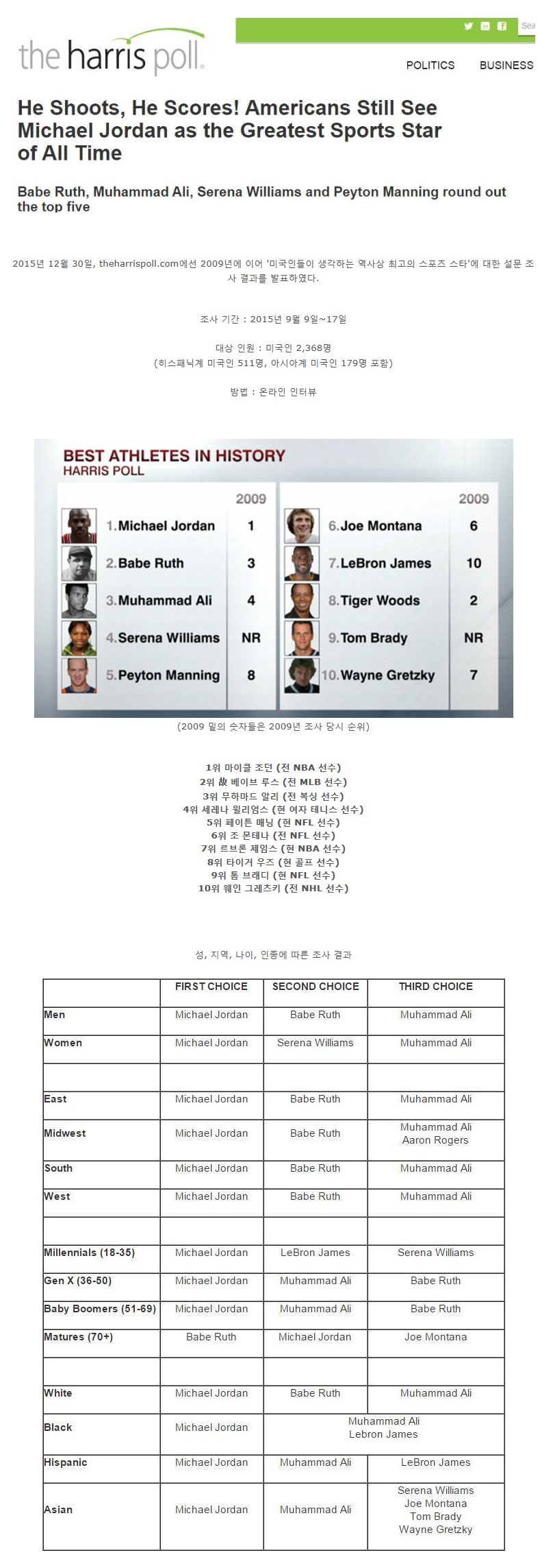 Subject   미국인 대상 역대 최고의 스포츠 스타 TOP 10