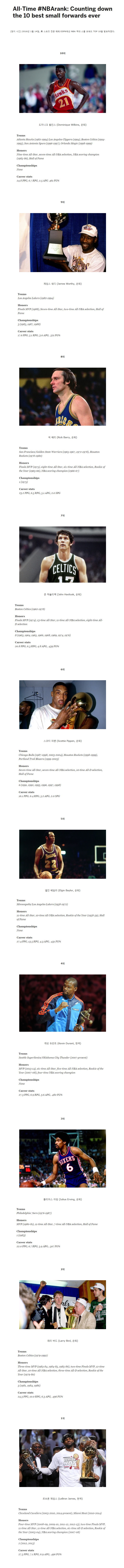 Subject   2016 ESPN 선정 NBA 역대 스몰 포워드 TOP 10
