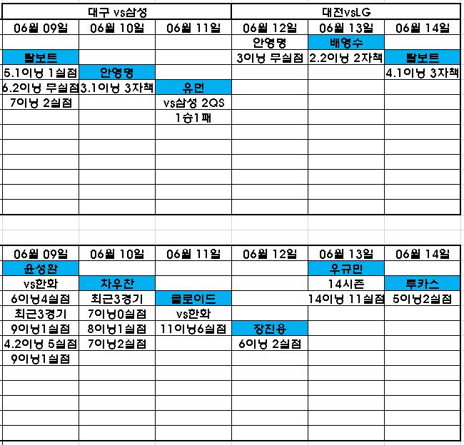 안영명이 삼성 상대로 초반에 무너지면 주말3연전 첫경기에 등판할 수 있다고 봅니다.
