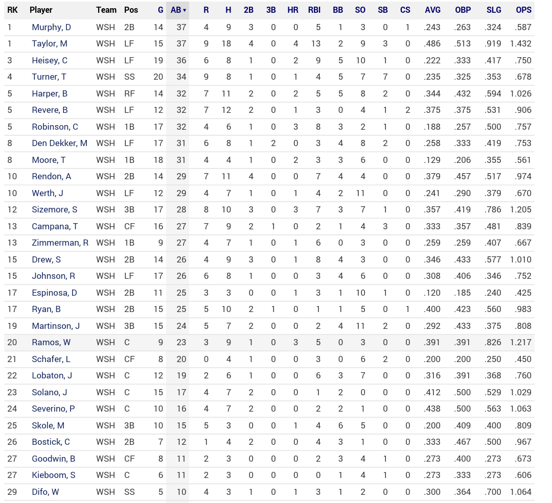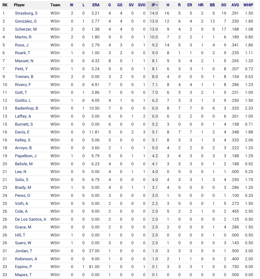 타선은 몇몇이(특히 머피랑 에스피노자!) 정신을 못차리고있는 것만 제외하면 별 문제 없이 순항하는 중입니다. 마이클 테일러의 빠따가 연일 터지고있다보니 워스의 주전 자리를 위협하는 지경에 이르렀는데 아마 르비어와 워스의 플레잉 타임을 조금씩 깎아먹을 것 같아요. 트레아 터너는 자신이 베이커가 추구하는 발야구의 핵심 축을 맡을 능력이 된다는걸 7도루로 증명했습니다. 하지만 역시 마이너에서 시작할 예정이구요. 키스톤 콤비 머피/에스피노자의 스캠 상태가 그닥인걸로 미뤄볼때 빠른 콜업의 가능성도 충분히 있습니다. 다만 이미 완성형인 수비와 주루에 비해 타격적인 면에서는 더 다듬을 시간이 필요하지않나 생각됩니다.