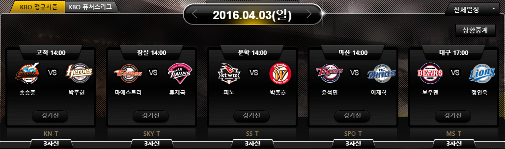 Subject   2016 타이어뱅크 KBO 정규시즌 개막 3연전 불판