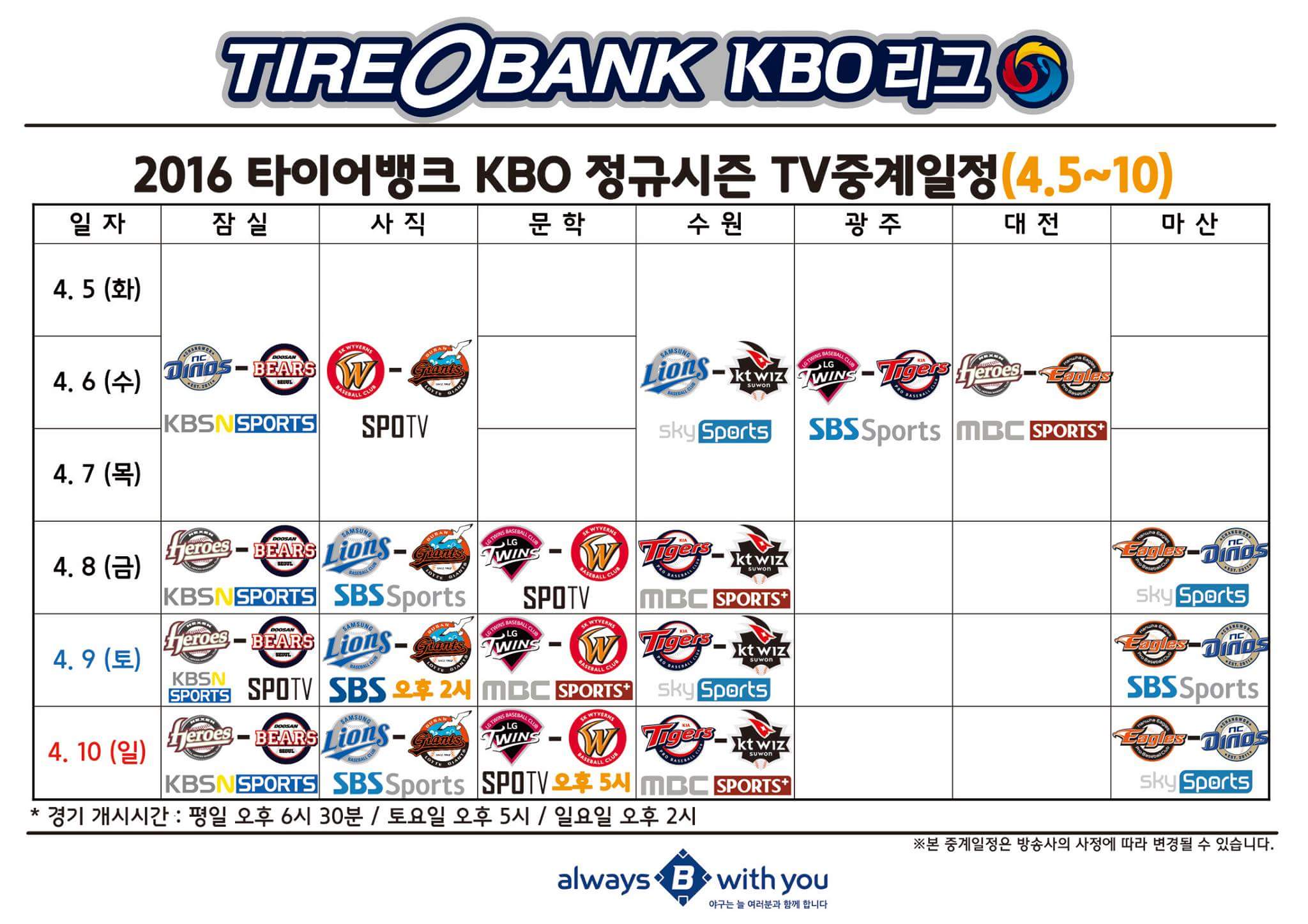 659 야구2016 타이어뱅크 KBO 정규시즌 2주차 불판 2 NF140416 16/04/05 5387 0