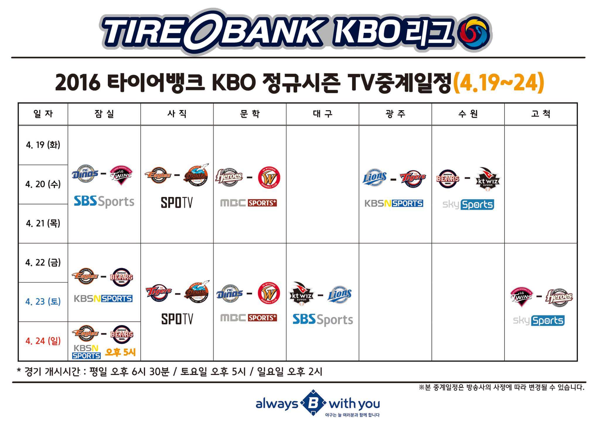 Subject   2016 타이어뱅크 KBO 정규시즌 4주차 불판