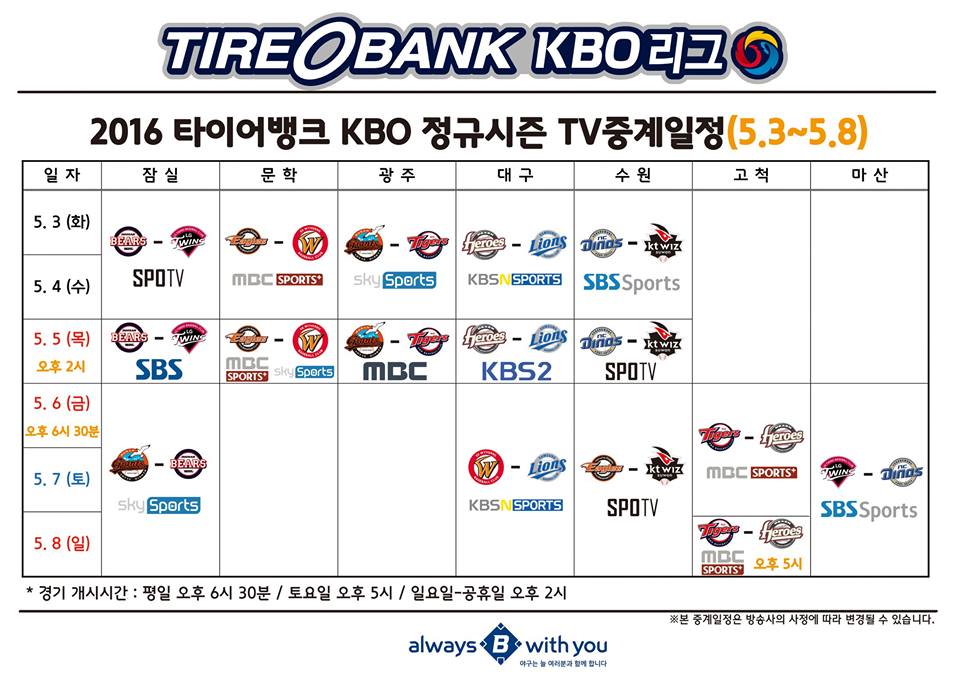 Subject   2016 타이어뱅크 KBO 정규시즌 6주차 불판