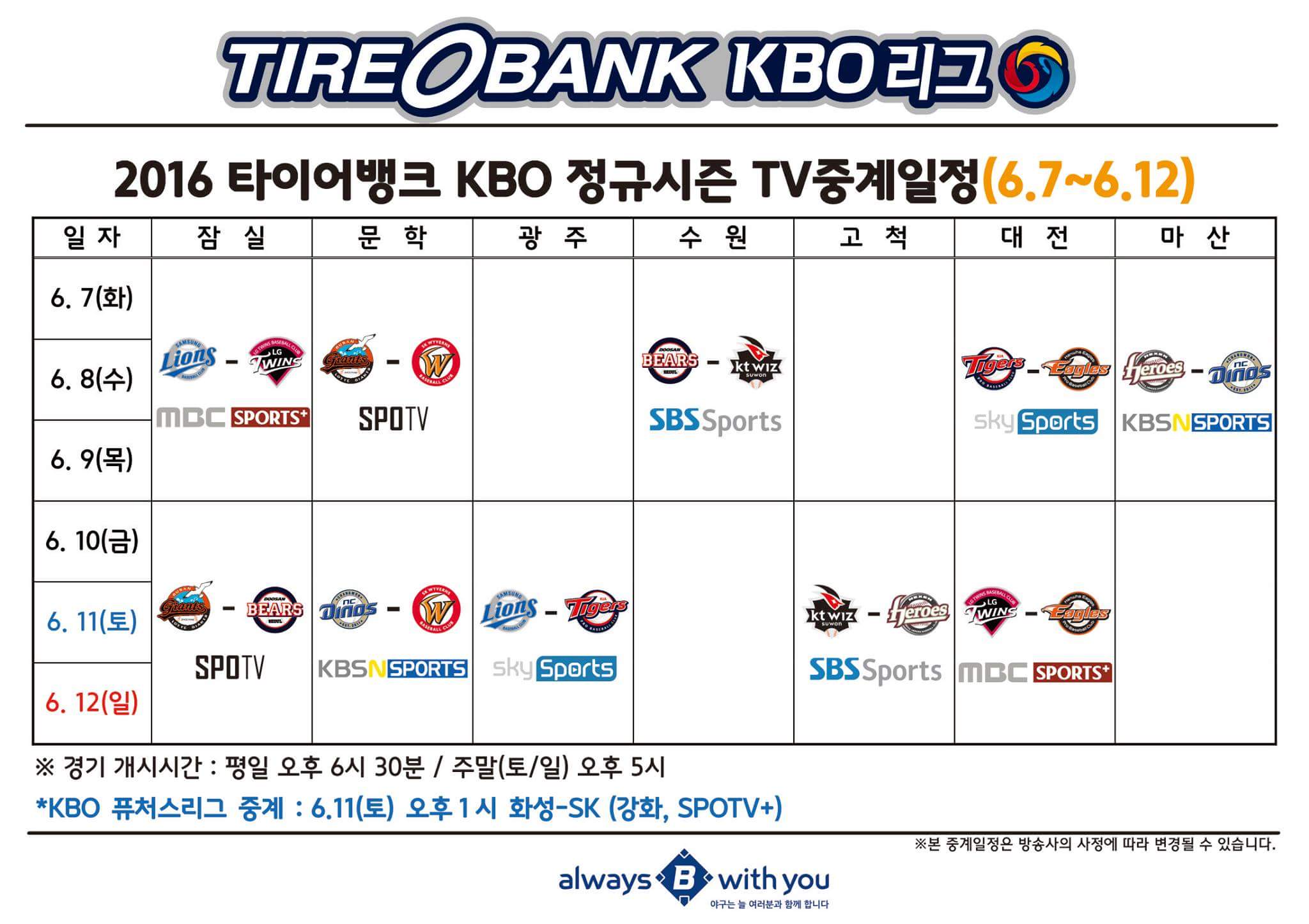 Subject   2016 타이어뱅크 KBO 정규시즌 11주차 [불판]