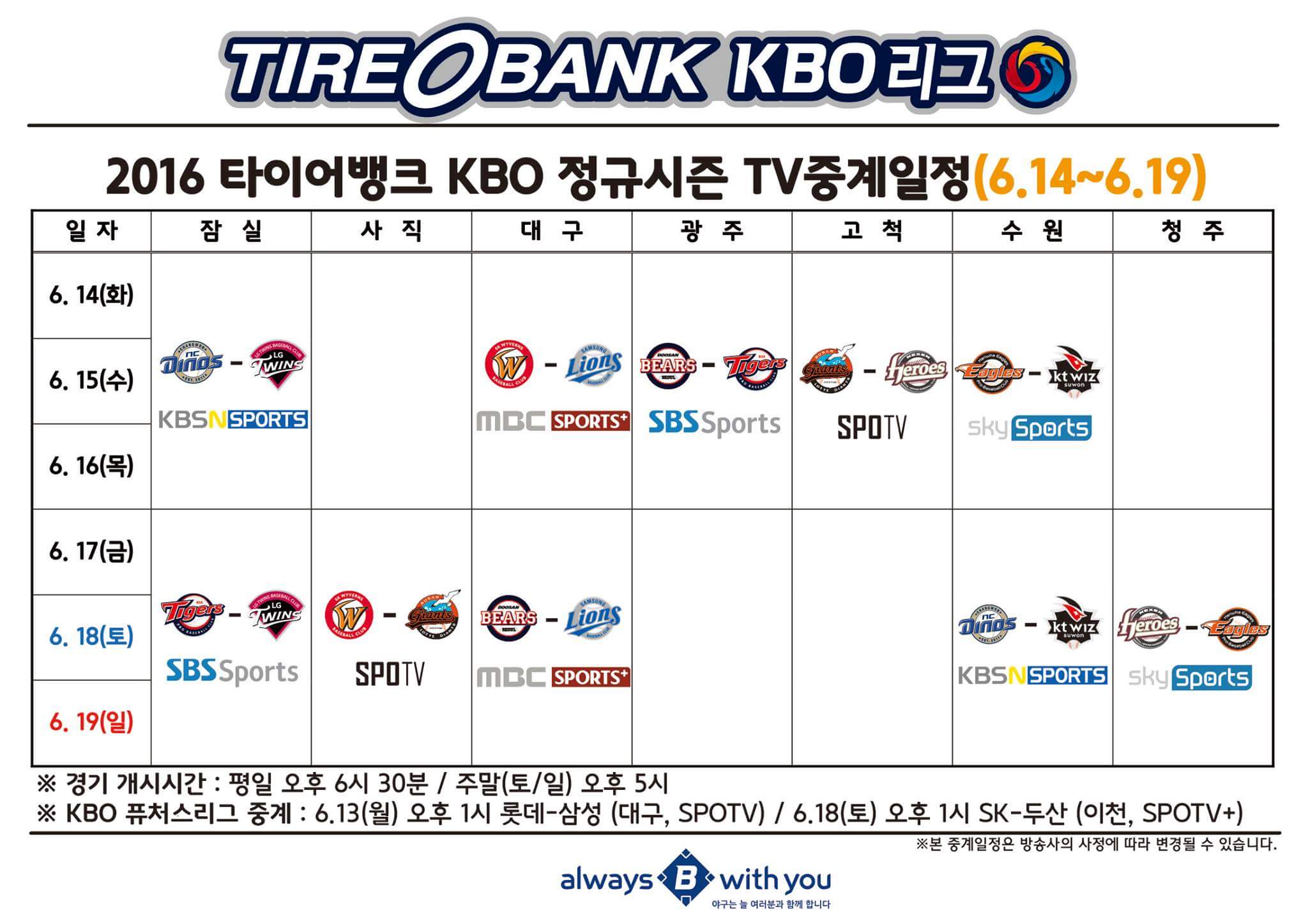 Subject   2016 타이어뱅크 KBO 정규시즌 12주차 [불판]