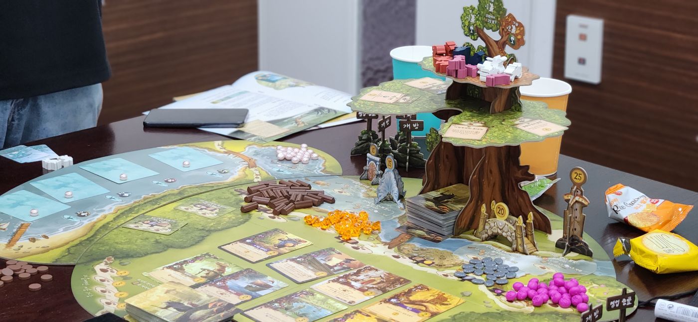 아르낙, 세븐원더스, 스플렌더, 어스 등 온갖 녀석들을 짬뽕시킨 굉장히 요즘 게임스러운 작품입니다. 3인 베스트로 되어있던데 그럴만한게 4인으로하니 시간도 오래 걸리고 템포가 느려서 붕뜨는 시간이 좀 있어요. 그래서 평일인데 12시반까지 달려버렸네요. 셋은 경험자인데 제가 초플이라 설명하는 시간이 들어간건 감안해야합니다만 그래도 듄이나 아르낙 같은 유사게임에 비해 시간이 더 걸리는거 같아요. 같은 풀확장 기준이라면 듄이 더 걸릴지도??