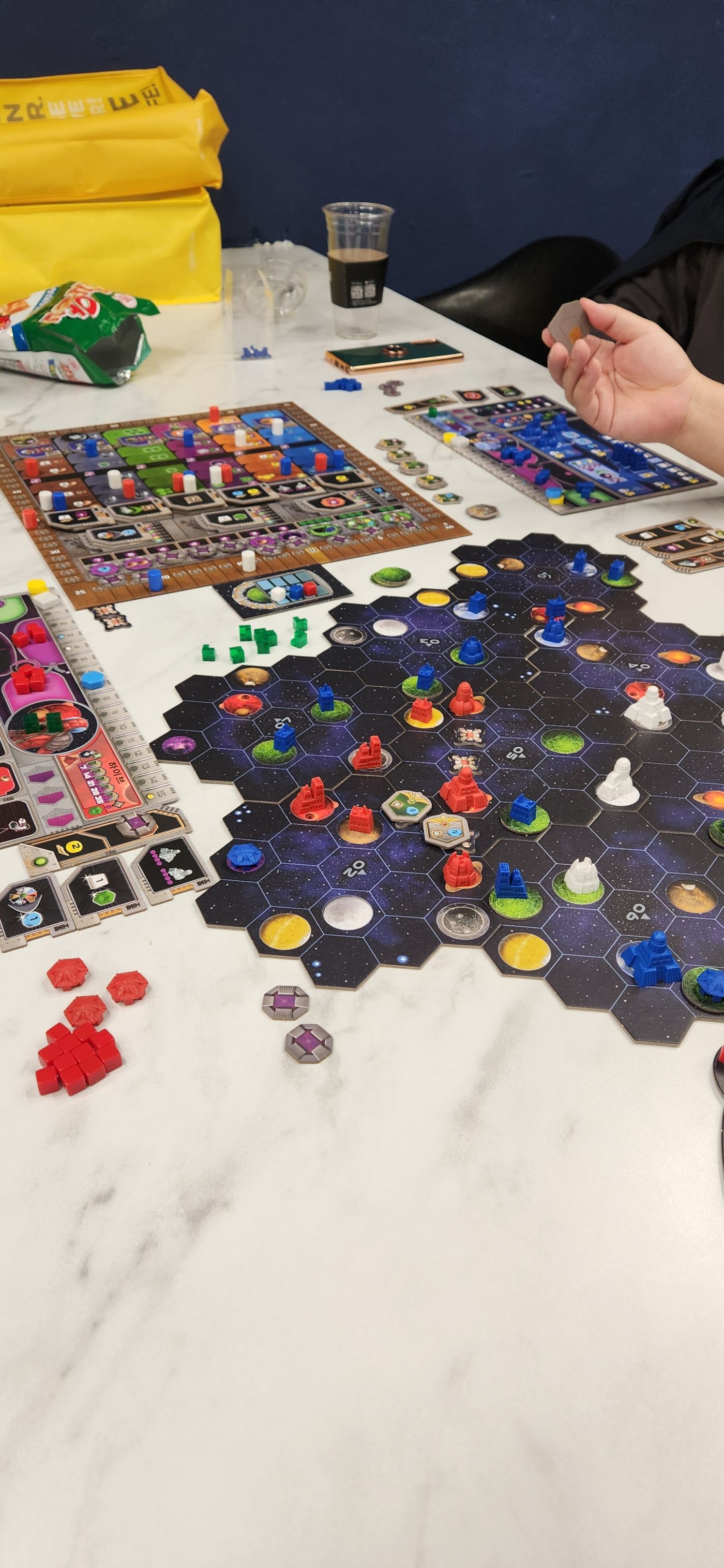 초플때 한거 거진 까먹어서 룰 설명을 또 한참 들었는데 이렇게 한두번 더 하면 아르낙처럼 중간중간 확인만하며 게임 진행 가능한 수준이 되지않을까싶어요. 재밌습니다.