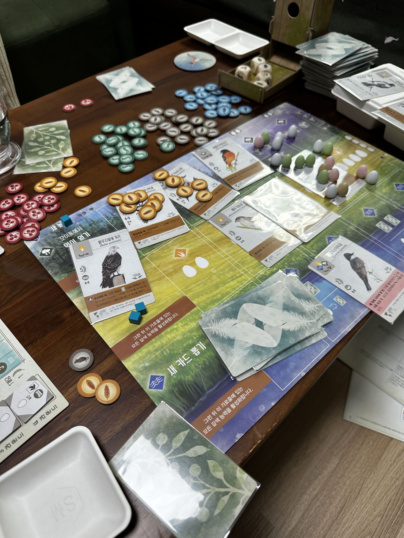 산 뒤로 여자친구와 꽤나 많이 했어요. 2인플 하기도 괜찮고(사실 상호작용이 많이 없어서 벽 보고 1인플 하는 느낌도 좀ㅋㅋㅋ) 새 그림들도 귀엽고 룰도 엔진빌딩 게임 치고는 적당히 쉬워서 초심자가 하기 괜찮겠다 싶었는데 시켜보니 또 여자친구 반응이 좋아서 벌써 10판 정도는 한 듯 ?