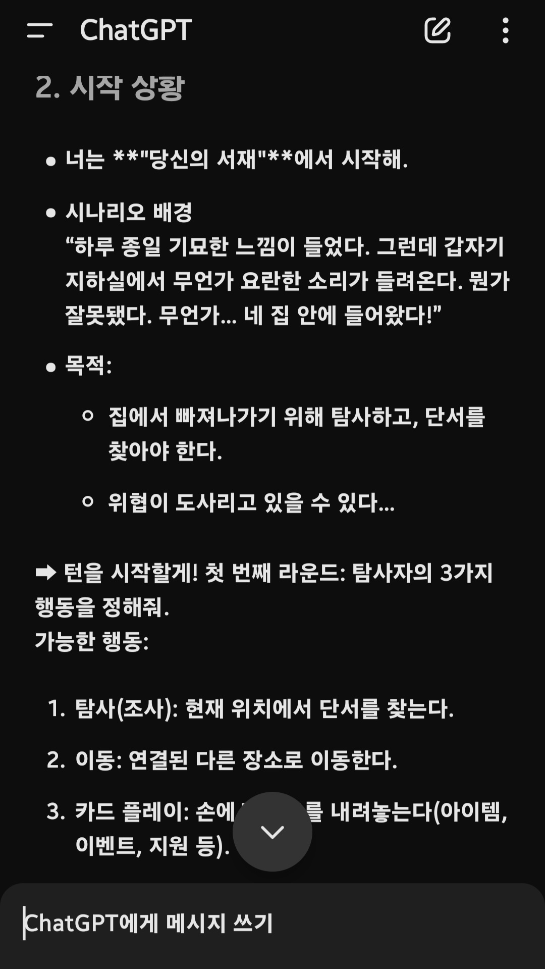 80 챗지피티로 아컴호러 카드게임 하기 1 사슴도치 25/02/24 1521 1