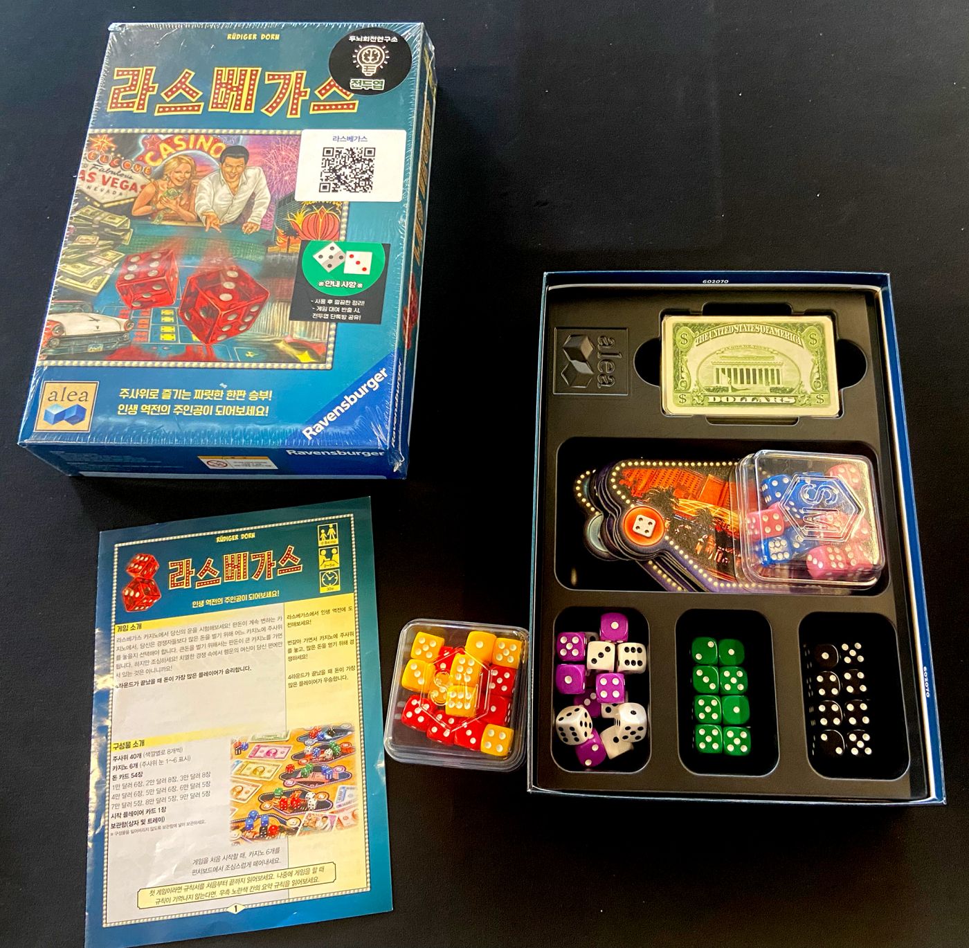 라스베가스는 5가지 색의 주사위를 사용하는 최대 5인 게임입니다.