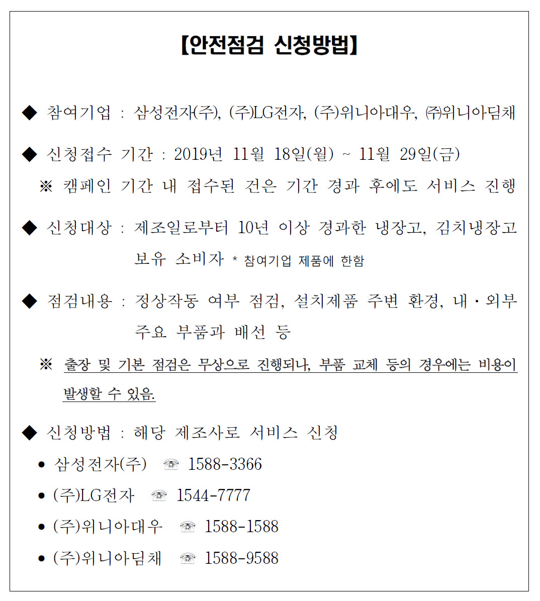 Subject   10년 이상 사용한 냉장고/김치냉장고 내일까지 무상점검 신청하세요