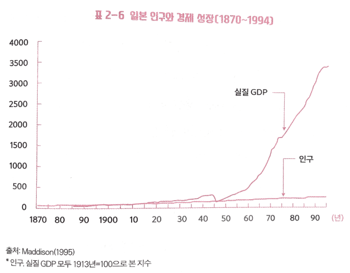 - 일본의 경제성장과 인구증가를 그린 그림은 크게 과장되었음