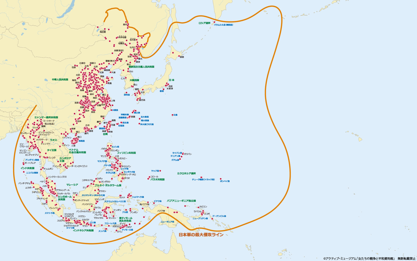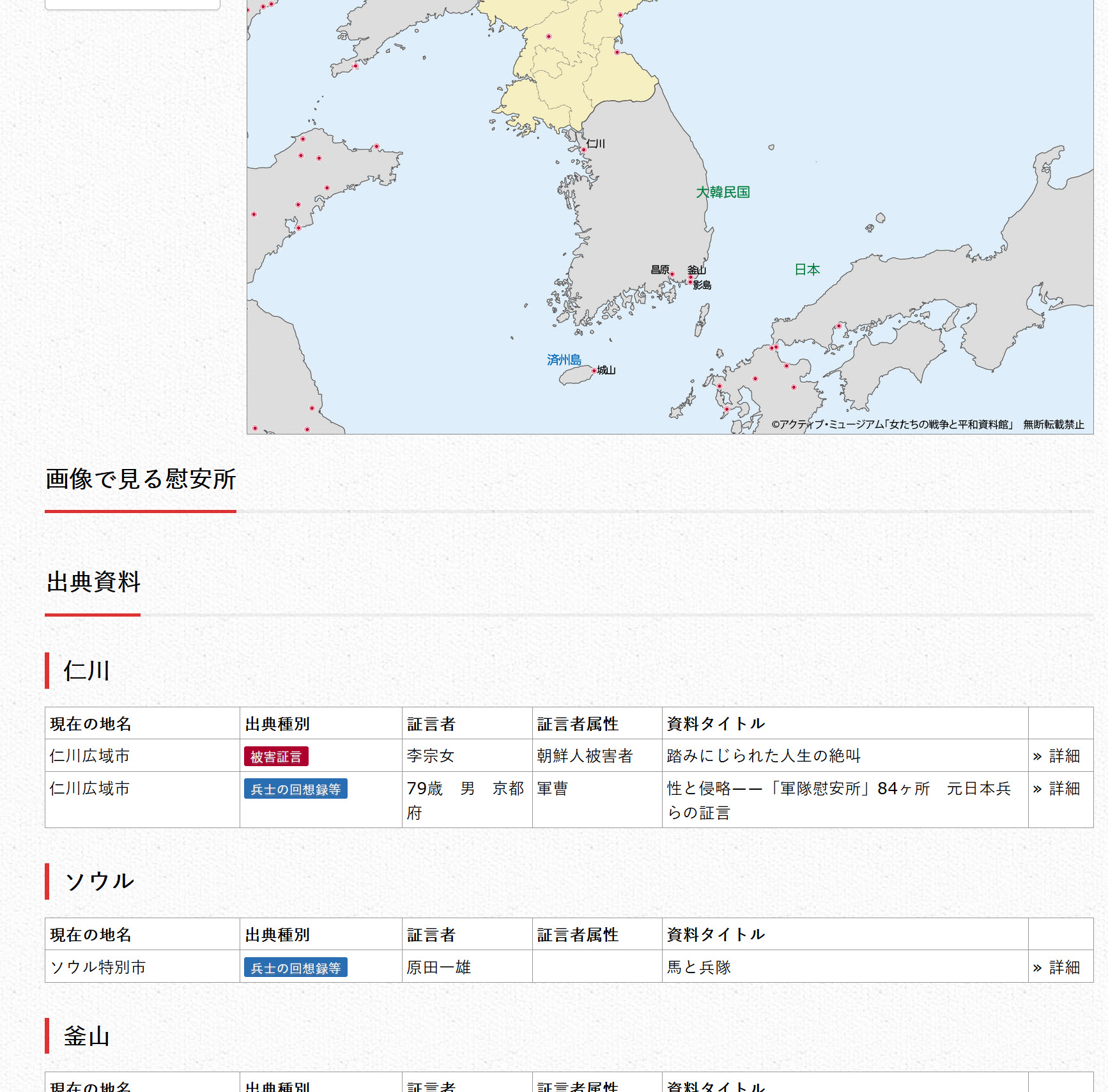 일본 "여성들의 전쟁과 평화 자료관"이 만들어 공개한 지도가 업데이트 되었습니다.