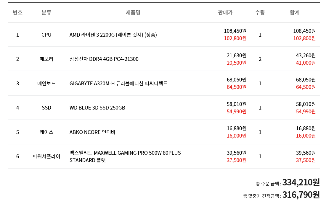 Subject   사무용 컴퓨터 견적입니다. (AMD 견적 추가)