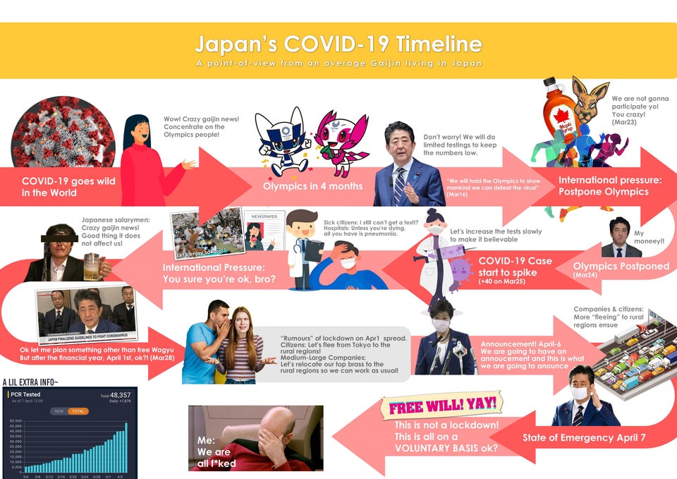 레딧보다가 너무 웃겨서 가져왔습니다 일본의 COVID-19 탐라 1. Covid-19 출연 - 와우 미친 외국 뉴스네! - 무시하고 올림픽에나 집중합시다! (올림픽 4달전) 2. 아베짱 - 걱정마십쇼! (테스트를 쪼금만해서) 감염자수를 낮추겠습니다 - (3월 16일) 올림픽을 정상적으로 개최해서 인류가 바이러스를 이기는 모습을 보여드리겠습니다! 3. 국제적 압박 : 올림픽 연기 - (3월 23일) 캐나다 호주 : 미쳤니? 내가 올림픽 참가하게? 4. 올림픽 연기 결정 - 아베짱 : ㅆㅂ 내 돈! 5. 감염자 급증 (25일 +40명) - 음.. 그래프 모양은 관리해야지.. 점점 테스트수를 늘려볼까? - 감염의심자들: 뭐임? 나 아직도 테스트 못받는거임? - 병원 : 당장 뒤지는 중이 아니면 니네들 그냥 단순 폐렴임 6. 국제적 압박 : 니들 진짜 괜찮은거임? - 샐러리맨 : 외국 가짜뉴스 뒤져라~ 일본인은 코로나 면역임 - 아베짱 28일 : 공짜 와규 말고 다른 계획좀 준비 해볼게, 근데 회계년도 이후인 4월 1일 이후부터다 ㅇㅋ? 7. 4월 1일 락다운 루머가 퍼짐 - 시민들 : ㄱㅊ 그냥 도쿄에서 시골로 튀면됨 - 중견-대기업들 : 일단 중요한건 시골에 있는 부서로 미리 다 넘겨놔! 8. 도쿄도지사 !님들 나 중대발표! (4/6) 내일 아베짱 중대발표 할건데 지금 내가 말하는게 내일 발표할 내용임 (중대발표를 위한 중대발표) 기업/시민들: ㅅㅂ 빨리 시골로 튀어 9. 아베짱 4/7 긴급상황 발표 - 아 근데 락다운도 안할거고 그냥 니들 "자발적 참여" 10. 나 ㅅㅂㅅㅂ 좆됐네.. 베스트 댓글 이 그림 나한테 팩스좀 보내줘 0